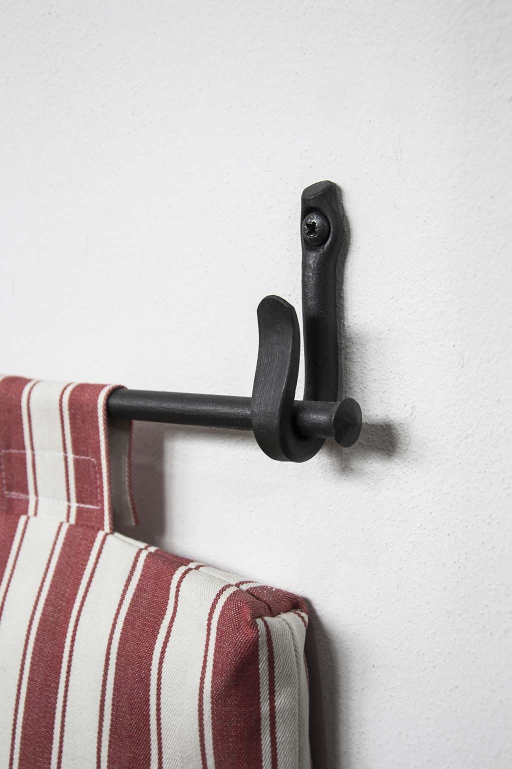 Součástí kované garnýžky PURITY jsou dva háčky, dva šrouby a tyč dle rozměru, který jste si vybrali. K instalaci potřebujete utahovák nebo šroubovák a ideálně vodováhu. První nainstalujte háček do zdi podle typu stěny. Poté podle vodováhy našroubujte háček druhý. Montáž je velice snadná.